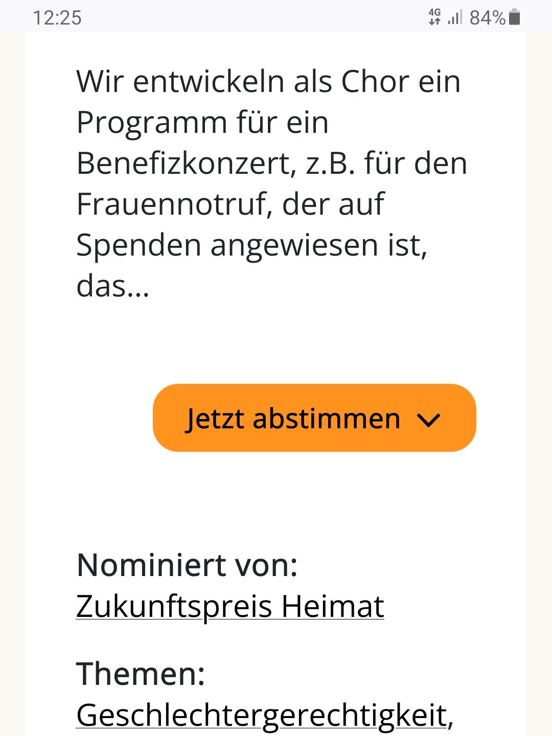 Dafür brauchen wir Eure Stimme- bis zum 26.10.25 könnt ihr gerne zahlreich für uns stimmen.
